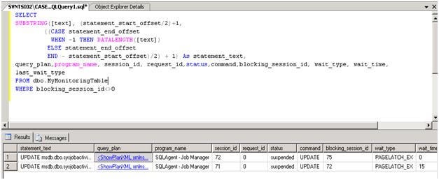 After running job we can see what SQL Server statements have been captured.  For this we have to query the MyMonitorTable table as shown in the image below:
